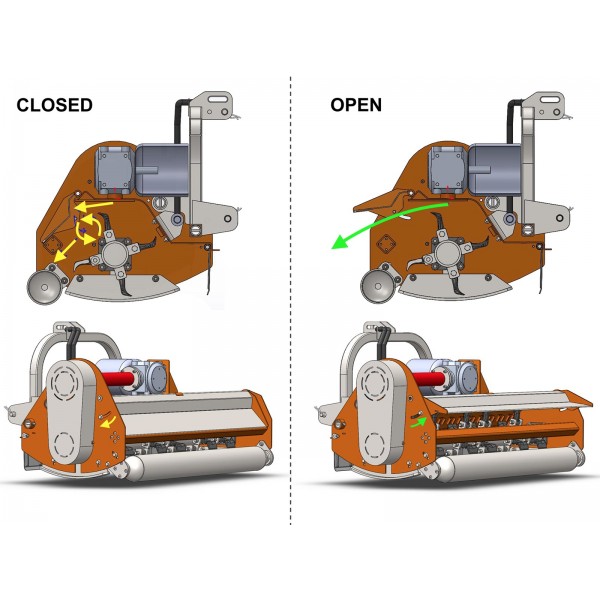 Capot fermé, effet mulching: le matériau végétal reste plus longtemps dans la chambre de coupe et est pulvérisé.