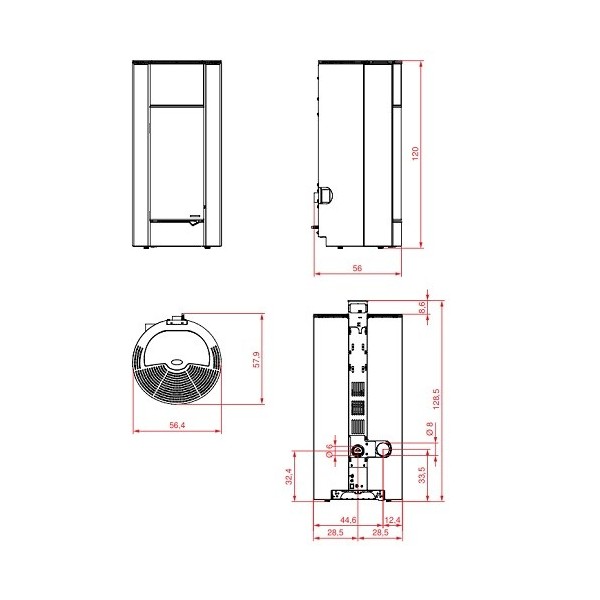 • poêle à forme elliptique avec revêtement en acier ou en verre ;